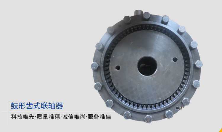 5、傳動(dòng)效率高達(dá)99.7%。 基于經(jīng)上特點(diǎn),國(guó)內(nèi)外已普遍以鼓形齒替代直齒式聯(lián)軸器。鼓形齒式聯(lián)軸器,其剛性大,有撓性,無(wú)彈性,故不適宜用于要求減振、緩沖及二軸對(duì)中要求嚴(yán)格的機(jī)械。