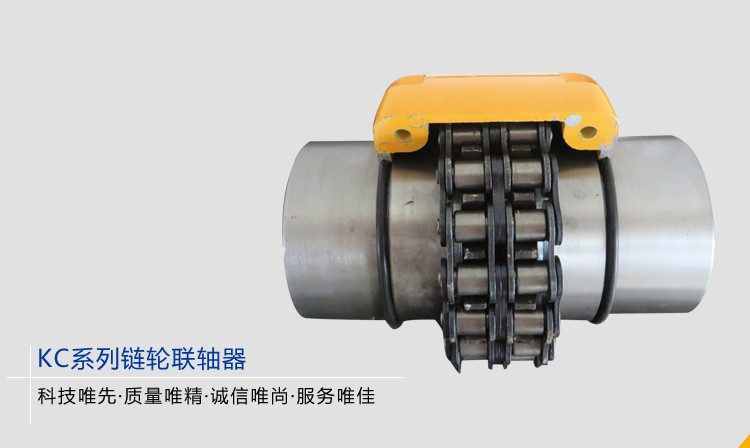 KC系列鏈輪聯(lián)軸器是利用公用的鏈條,將兩個帶有相同齒數(shù)的鏈輪齒的半聯(lián)軸器固定在一起,不同結(jié)構(gòu)型式的鏈條聯(lián)軸器主要區(qū)別是采用不同的鏈條,常見的有雙排滾子鏈聯(lián)軸器、單排滾子鏈聯(lián)軸器、齒形鏈聯(lián)軸器、尼龍鏈聯(lián)軸器等。雙排滾子鏈聯(lián)軸器 性能優(yōu)于其他結(jié)構(gòu)型式的聯(lián)軸器,為國內(nèi)外廣泛采用,我國亦已制訂為標(biāo)準(zhǔn)。