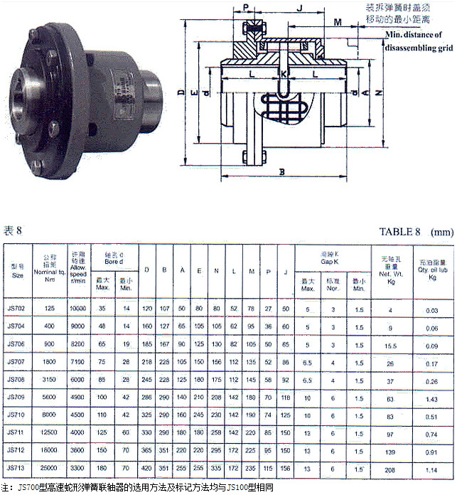 1、JS700系列高速蛇形彈簧聯(lián)軸器結(jié)構(gòu)簡(jiǎn)單,裝拆方便。整機(jī)零件少,體積小,重量輕,被設(shè)計(jì)成梯形截面的彈簧片與梯形齒槽的吻合尤為方便,緊密,從而使裝拆,維護(hù)比一般聯(lián)軸器簡(jiǎn)便。