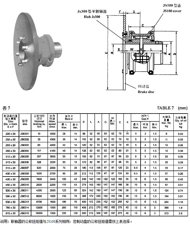 JS6300系列制動(dòng)盤式蛇形彈簧聯(lián)軸器是一種結(jié)構(gòu)先進(jìn)的金屬?gòu)椥月?lián)軸器。它以蛇形彈簧片軸向嵌入兩半聯(lián)軸器的齒槽內(nèi),來(lái)實(shí)現(xiàn)原動(dòng)機(jī)與工作機(jī)的聯(lián)接,由于簧片的特殊性能,從而很大程度上避免了原動(dòng)機(jī)與工作機(jī)的共振現(xiàn)象,使用壽命遠(yuǎn)高于非金屬?gòu)椥栽?lián)軸器;簧片所接觸的齒面為弧形,接觸面的大小隨傳遞扭矩的大小而變化,因而它能承受大的載荷變動(dòng)量,經(jīng)測(cè)定其短時(shí)超載能力為額定扭矩的2~3倍,傳動(dòng)效率達(dá)99.5%,運(yùn)行可靠;且蛇形彈簧聯(lián)軸器的結(jié)構(gòu)簡(jiǎn)單,裝拆方便,允許有較大的安裝偏差,適用于沖擊式的碎煤機(jī)、碎石機(jī)、曲柄往復(fù)運(yùn)動(dòng)、礦山、重型機(jī)械、減速機(jī)等