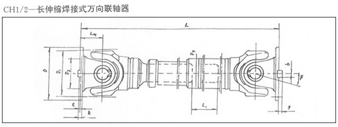 CH-長(zhǎng)伸縮焊接式萬(wàn)向聯(lián)軸器基本參數(shù)與主要尺寸